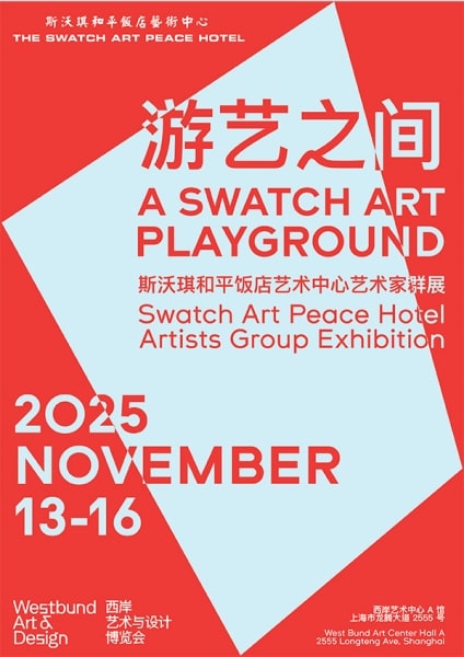 From November 13 to 16, 2025 the Swatch Art Peace Hotel presents A Swatch Art Playground at the West Bund Art & Design 2025, an immersive experience where 13 former and current Swatch Art Peace Hotel artists-in-residence transform the space with a vibrant mix of creative expression, including fabric installations, photography, painting, drawing, and video art.