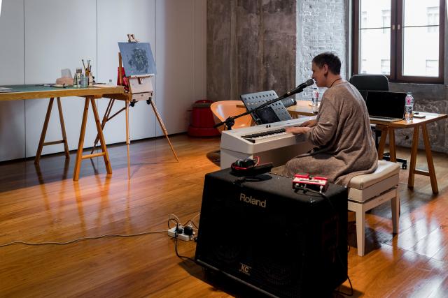 This trace is the final painting of a whole series that I created while working on lyrics and poetry regarding expat life in Shanghai. The in-between state of having left home, absorbing and being formed by new languages, cultures, people, thoughts, climate, time, sounds, smells... losing old roots while slowly, maybe even involuntarily growing new ones and yet never really becoming part of the new world is being symbolized by
